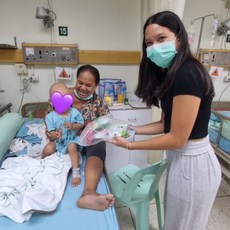 Annabel, our New Jersey ambassador, flew to Thailand in the summer of 2024 to deliver ~300 toiletries, food, and coloring books to impact 35 patients at the Srinagarind Hospital.
